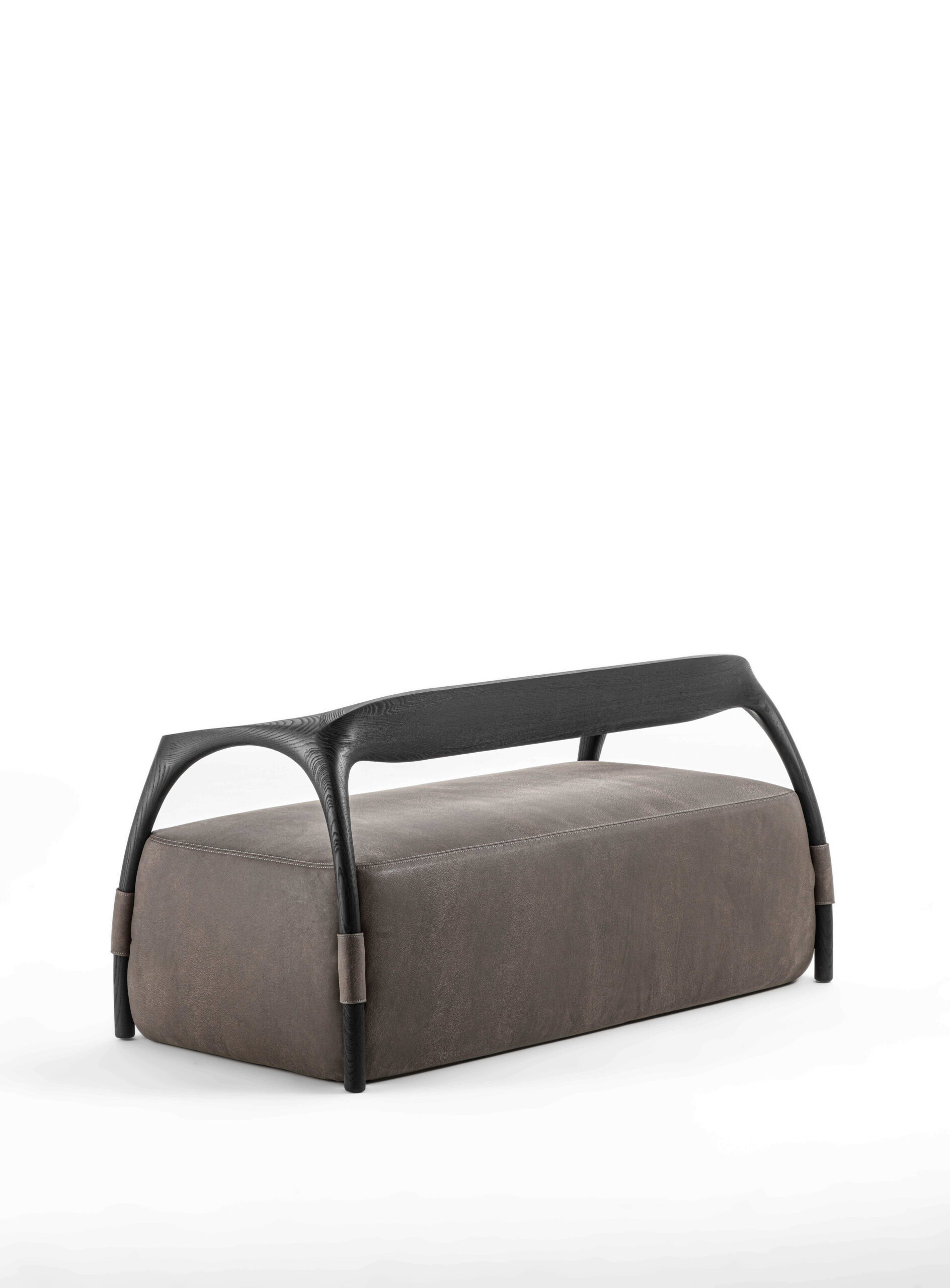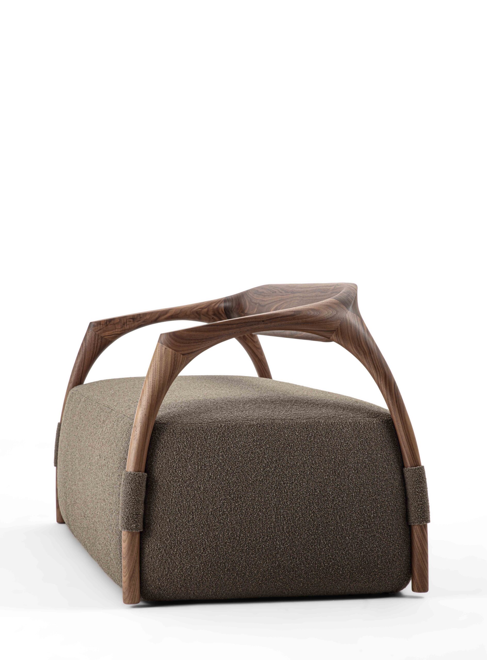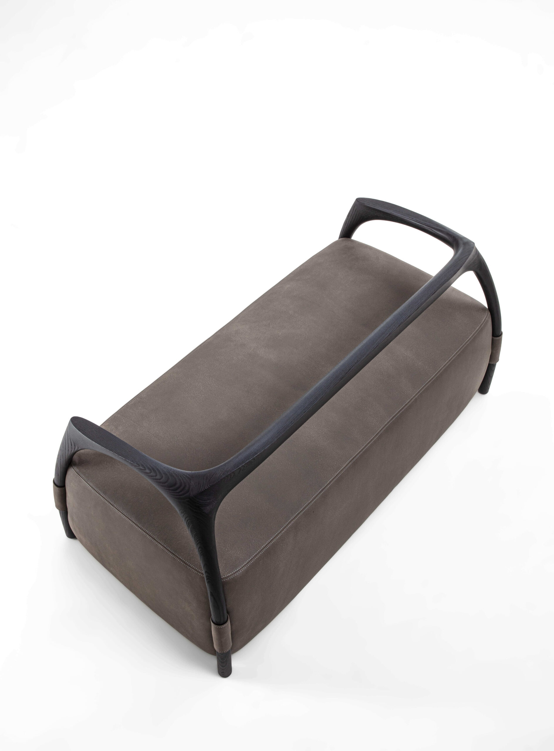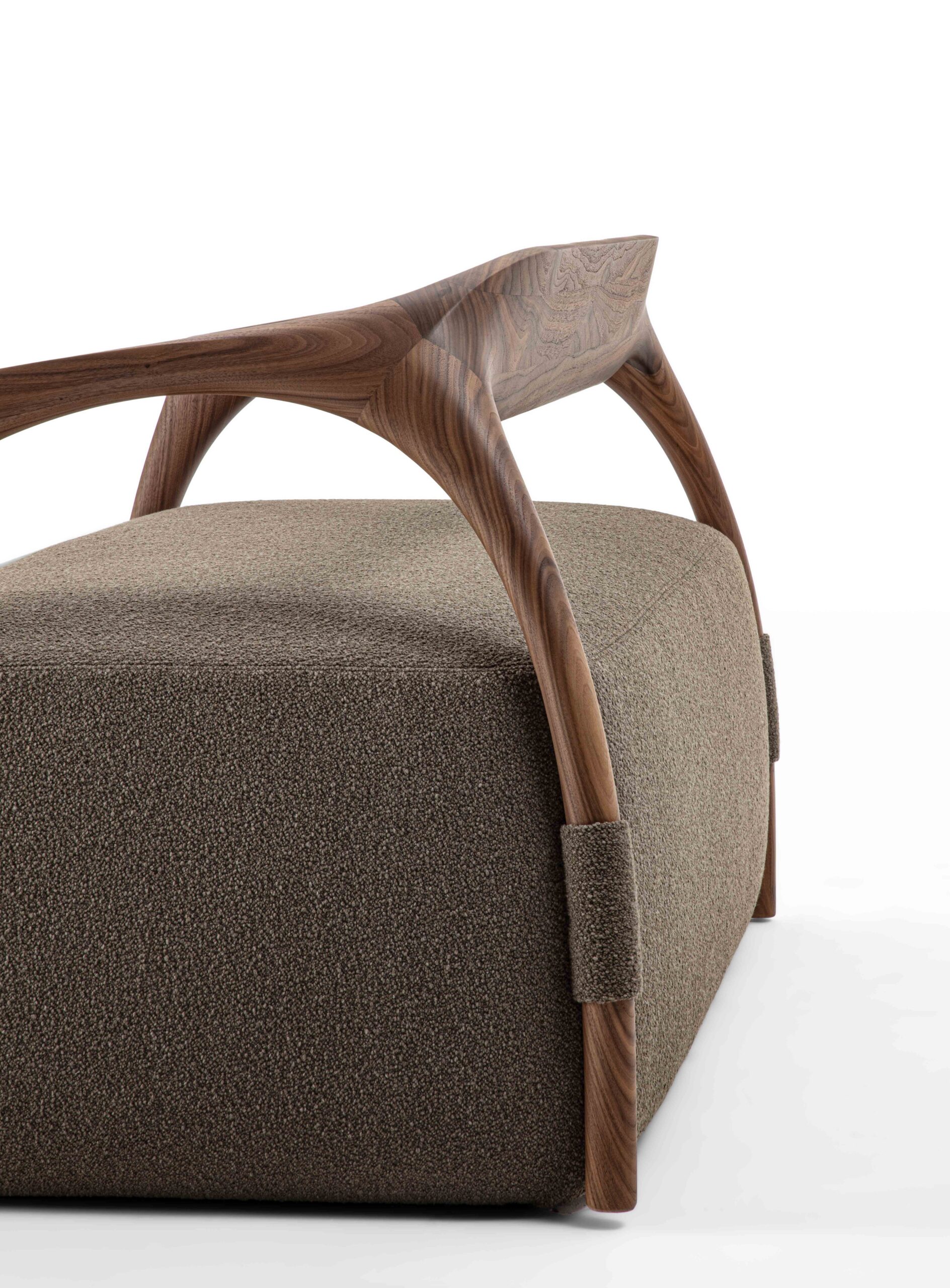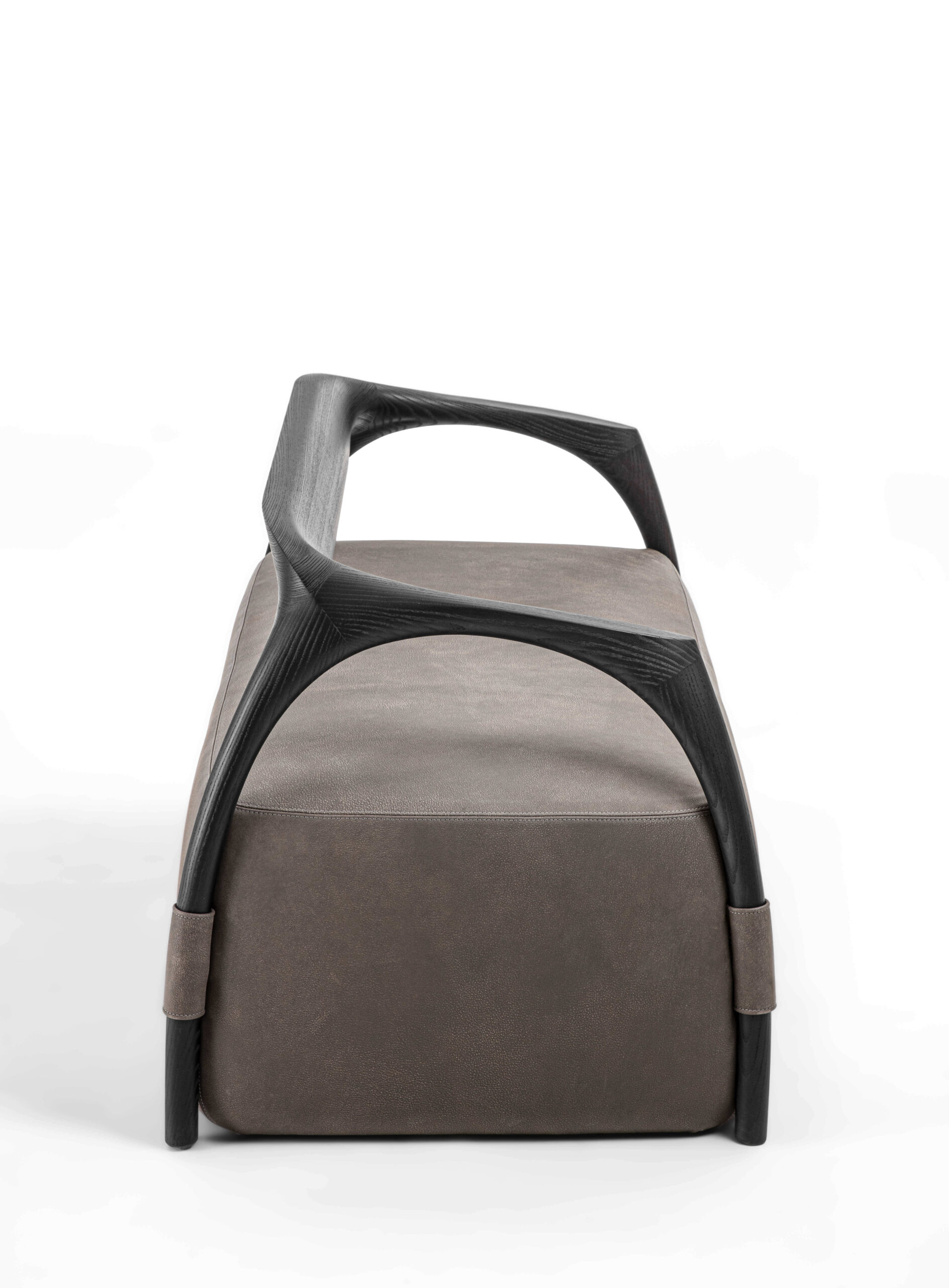 沙發結構採用實木製成,由椅腳與靠背構成,座墊為填充設計,可選擇布料或皮革包覆。