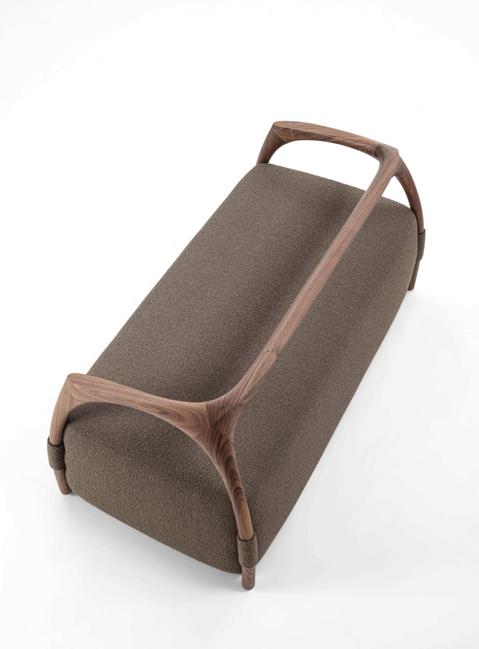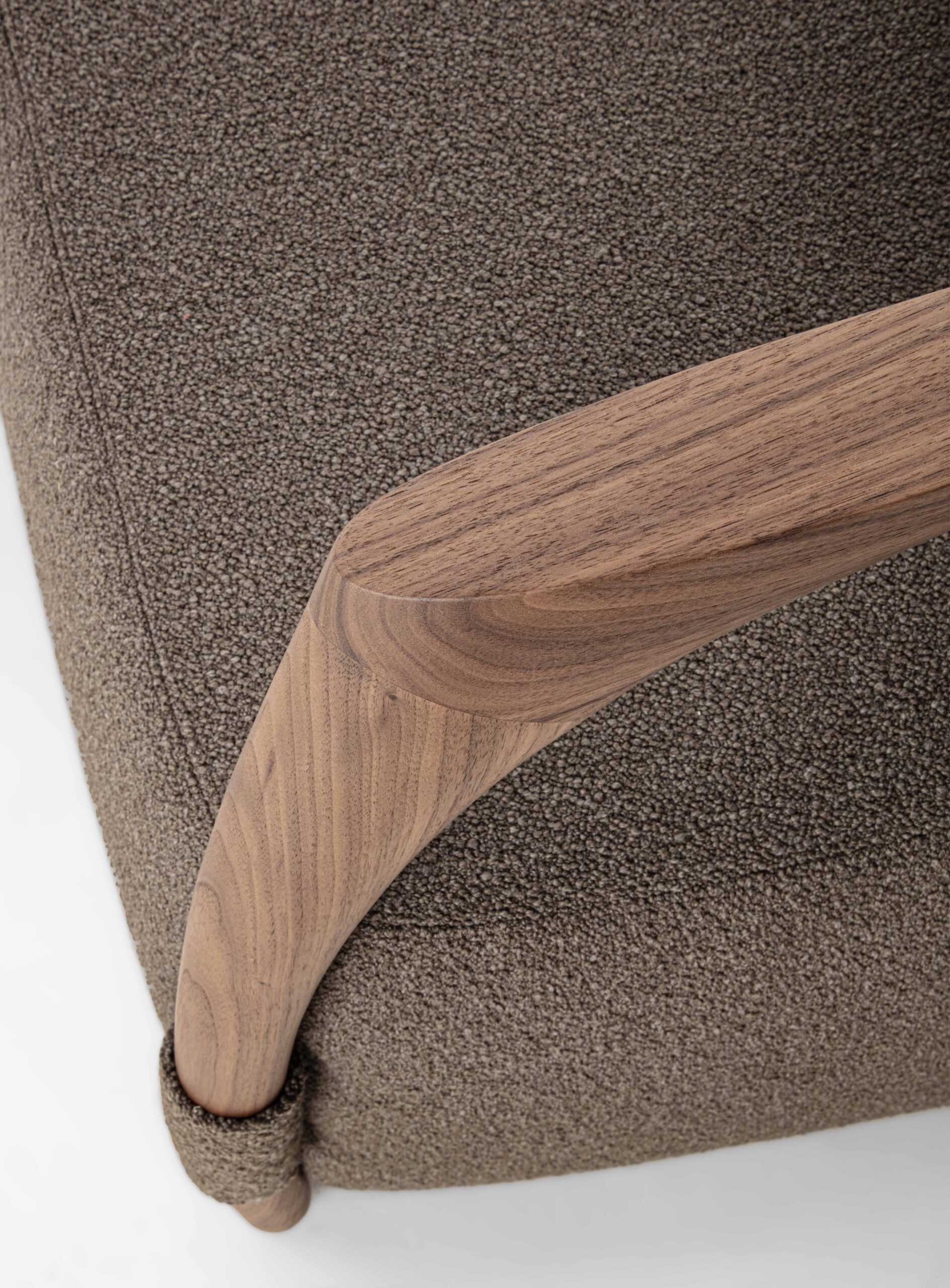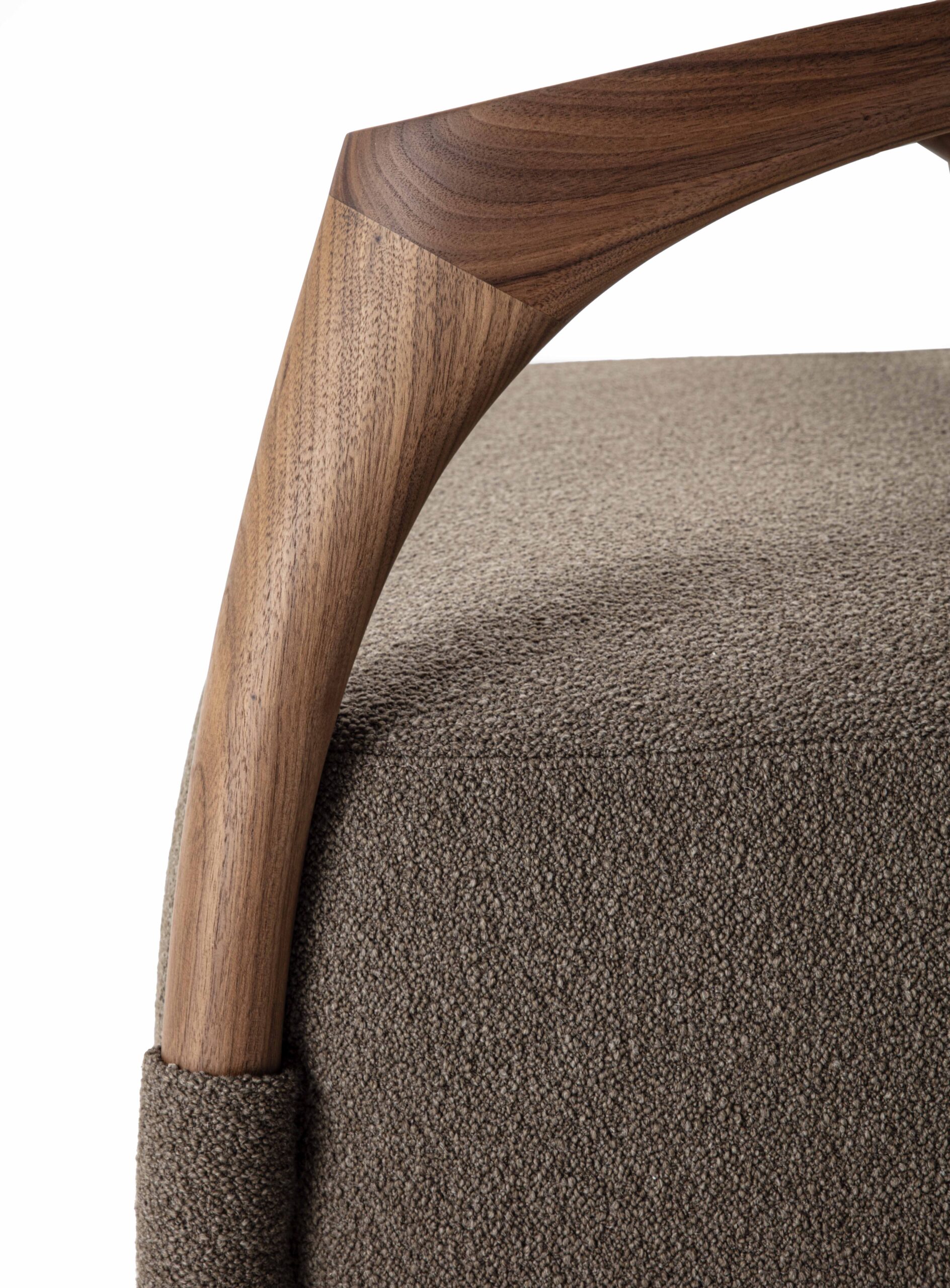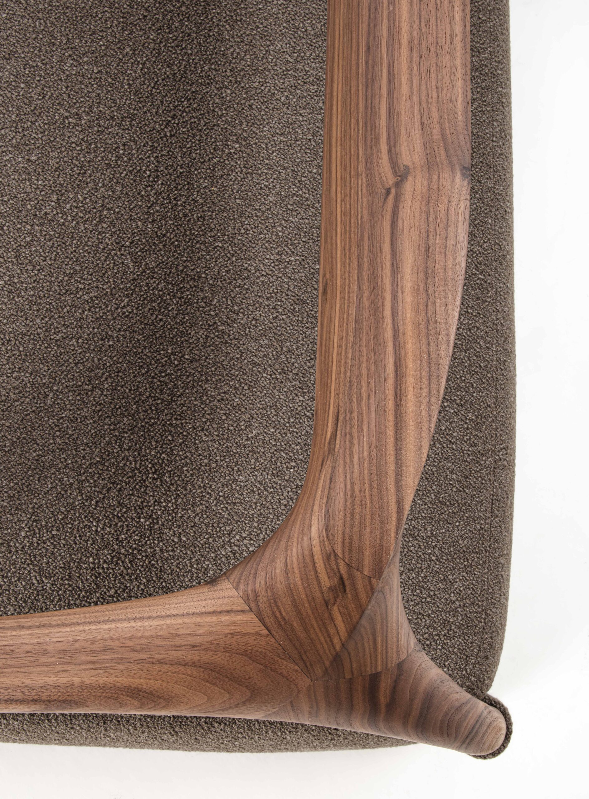 沙發結構採用實木製成,由椅腳與靠背構成,座墊為填充設計,可選擇布料或皮革包覆。