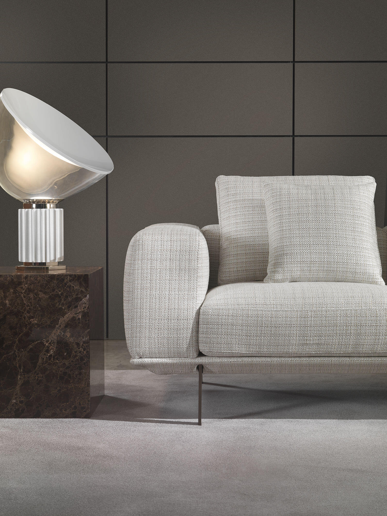 Richard沙發系列秉承輕盈、簡約且舒適的設計概念。纖細的底座由輕盈的金屬腳支撐,穩固地托起扶手、座墊和靠背。沙發線條幾何感十足,方正勻稱,比例協調,營造出現代簡潔的設計感。