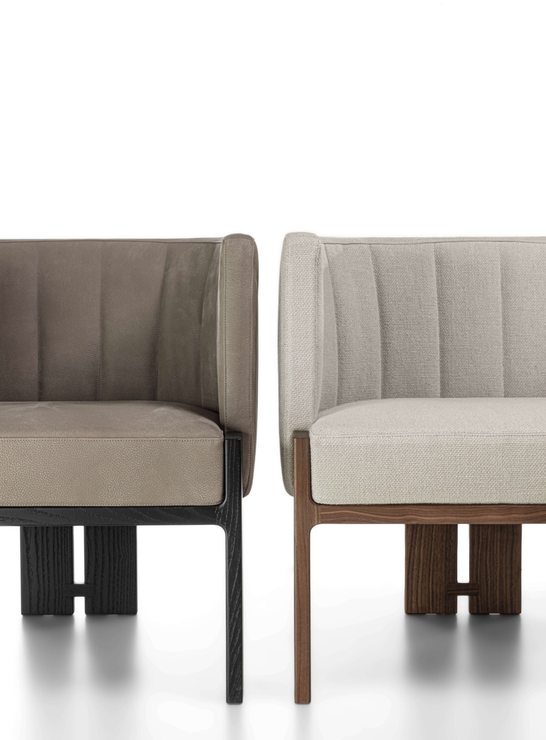 結構:卡納萊托胡桃木/白蠟木/黑白蠟木實木框架 座椅:皮革或布藝軟墊