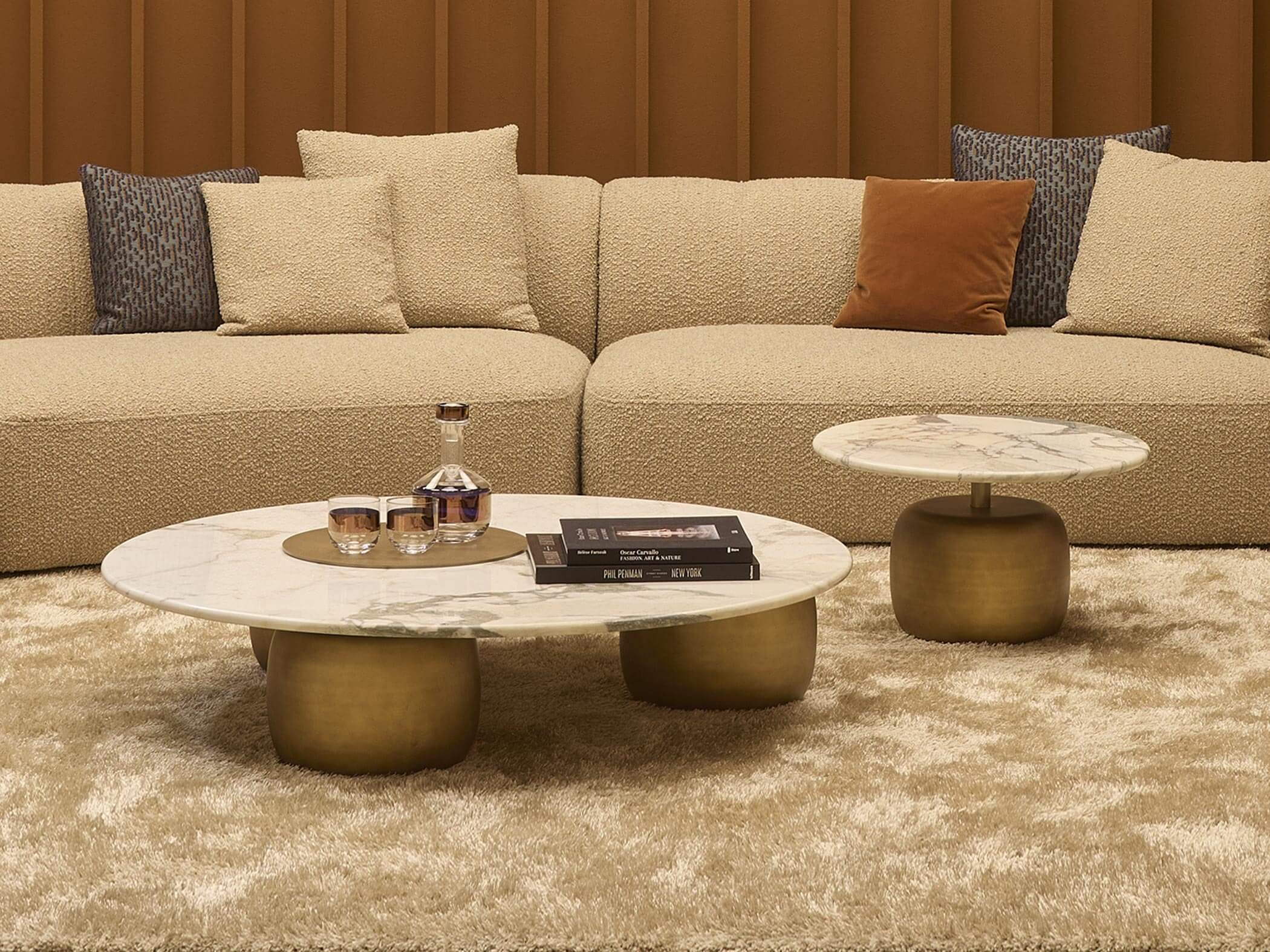 Lua系列餐桌和咖啡桌以其寬大而穩重的造型為特色。